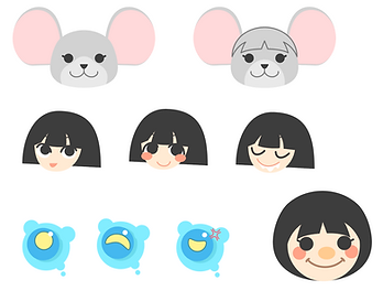 At the end, I changed the design to a fully front-facing, symmetrical head. Non-symmetrical facial features tend to produce awkward results when combined with eye-tracking, so a symmetrical structure is more suitable for this type of interaction. After reviewing the Rive Marketplace, I also found that most artists similarly use front-facing, symmetrical faces for this reason.